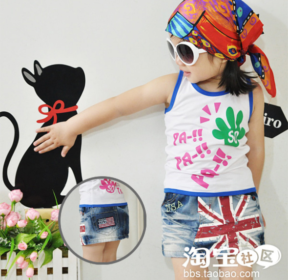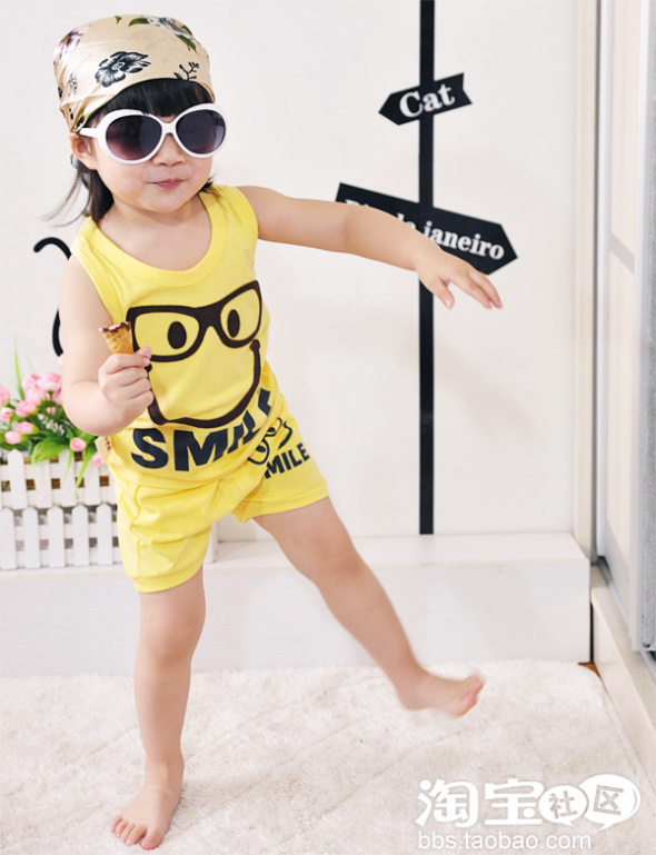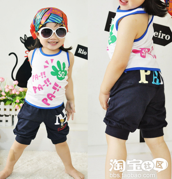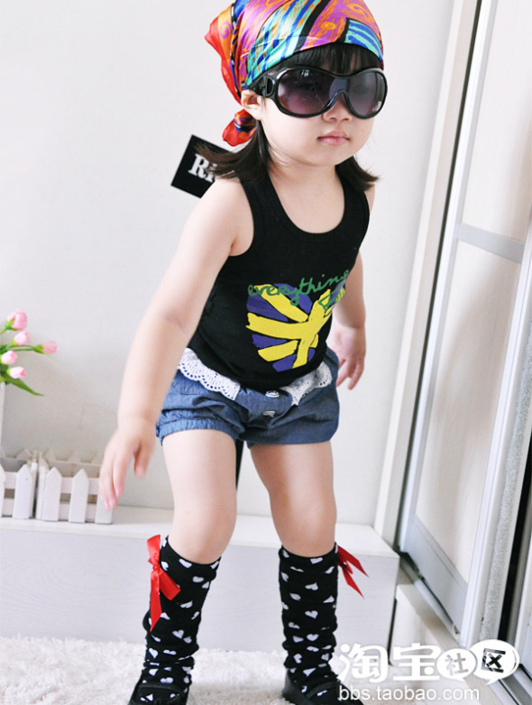 又是工字背心,加上今年最IN的哈伦裤,打造街头嘻哈风格小公主