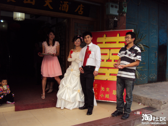 结婚当天是2009年的国庆,化的妆是在我们小县城化的,不是很漂亮的.眼睛肿肿的.