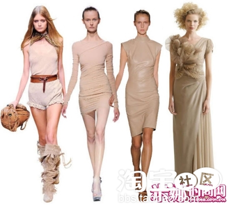 时装界定义:包括肉色、米白、浅粉红、浅棕等与肌肤接近的颜色,轻松优雅中透出隐约的性感,实在是举重若轻的设计典范。