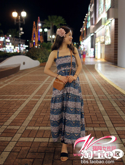 吊带长款连衣裙,尽显女孩子的妩媚姿态