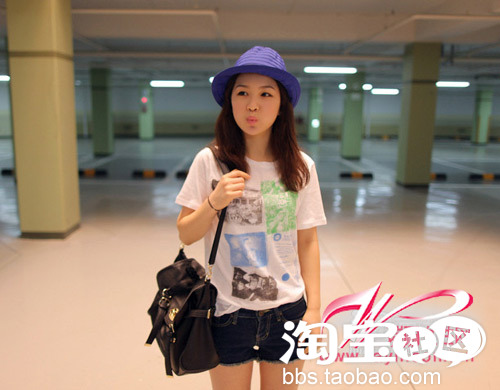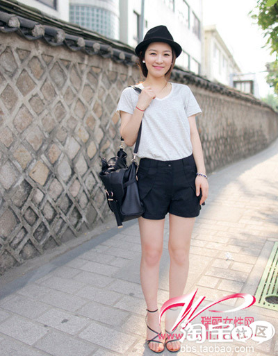 圆领休闲T搭配黑色短裤,搭出女孩子的好气质