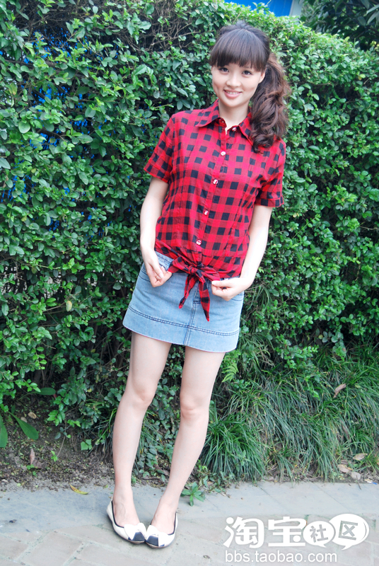 红黑格子,永不过时。轻薄的面料夏天穿很舒适。