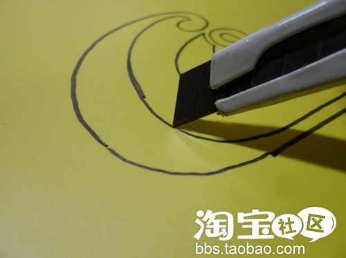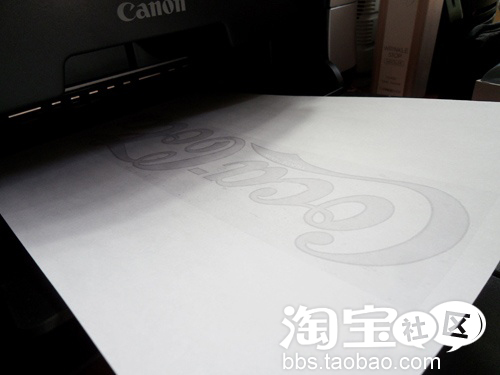 02 在打印出来的图纸上面覆盖贴上透明的玻璃纸,贴窗户上利用光线描logo部分