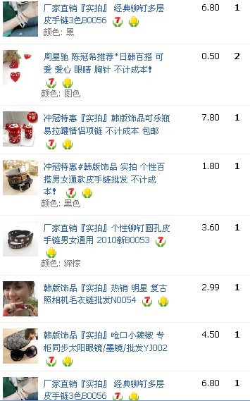 定好之后,我就开始考虑货源的问题,因为格子铺就那么点“平方”,大的产品摆不了几件,所以我把目光锁定在了饰品这一类
