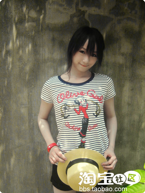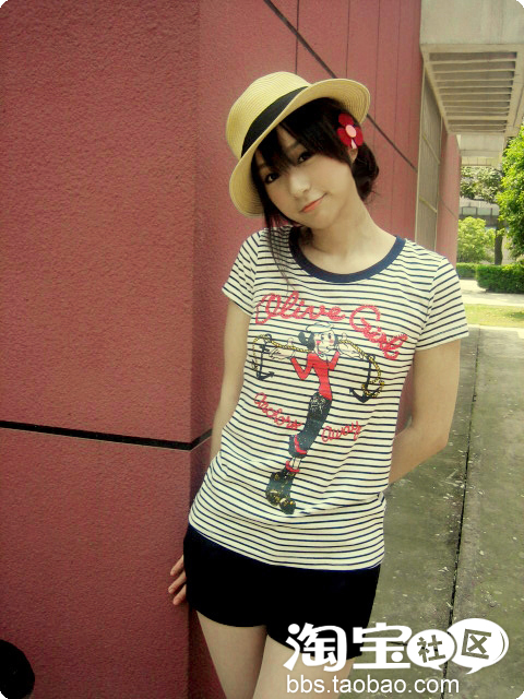 一件简单百搭的海军风卡通条纹T×简单的黑色小短裤