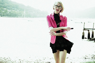 bread n butter的黑色OP搭配亮粉色的小西装,出游最适合~