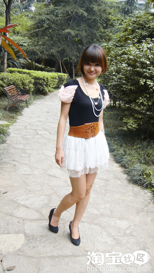腰带搭配必不可少,但是短裙的质地一定要好。