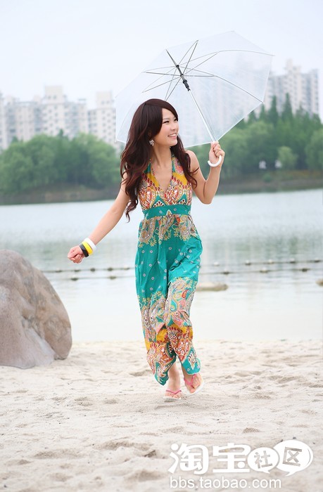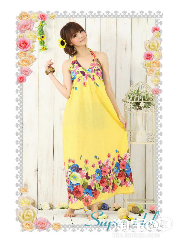 超级适合海边的吊脖长裙,无与伦比的美丽