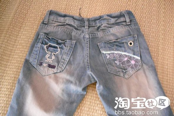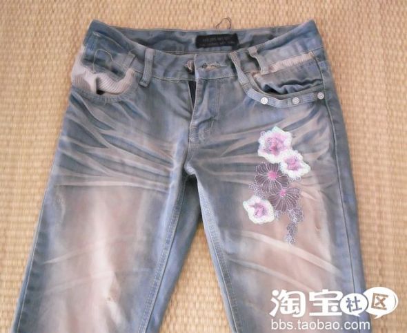 这条裤子 很喜欢,但是本来只是一个简单的板型,没有这朵花。。我感觉有些单调,就自己加了些东西在上边,用两片缝的花。。。呵呵、、