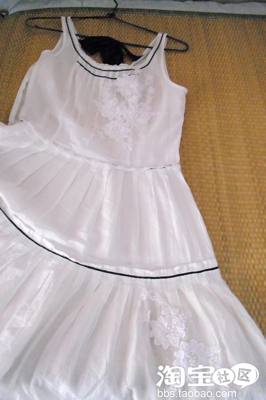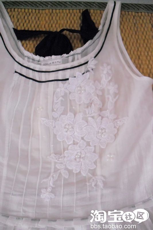 于是,有了自己改造版,仅此一件的歌莉娅。。。发挥了一下自己的创意 呵呵 。用了蕾丝和珍珠贴片,一针一针缝上去了 。