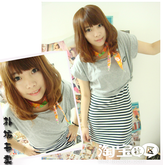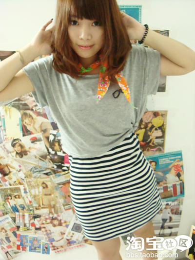 条纹背心长T裙 + 小短外T 配上个小眼镜 淑女又可爱又舒适~~