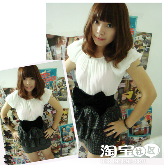 强悍!! 性感蛋挞连衣裙,上衣是雪纺哦!搭配条大蝴蝶结腰带,性感又时尚啊~