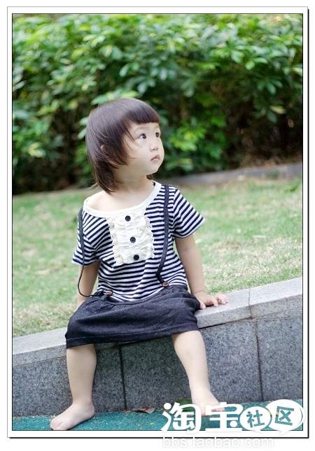条纹+背带设计=永不过时的小公主