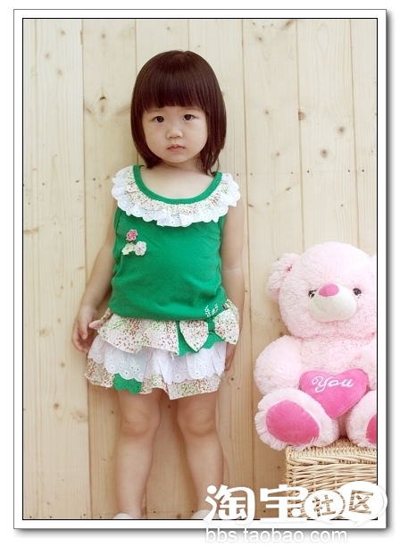 我够清纯可爱吧,衣服的花朵跟裙裙很配,绿色蝴蝶结也映衬得恰到好处