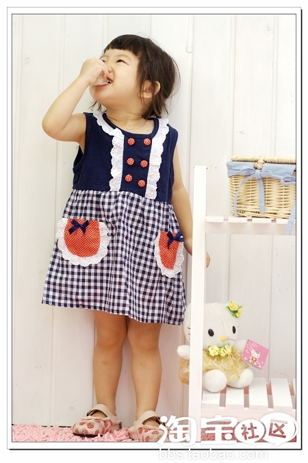 小格子+蝴蝶结很可爱的连衣裙,妈咪说如果有大的就好了,可以亲子,嘻嘻