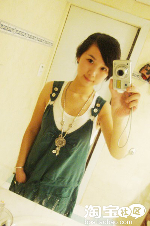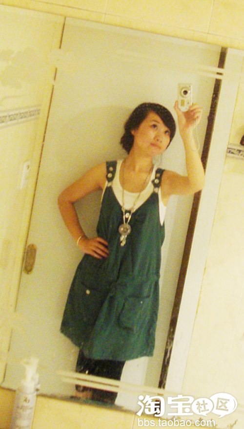 3.白色背心+绿色长裙+纯银毛衣链+打底裤.