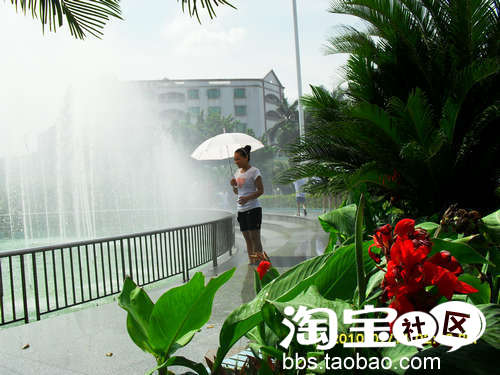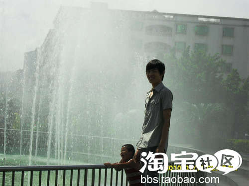 亦步亦趋,头顶大太阳,我们一起撑伞来到公明广场,突然发现有喷泉,很是凉爽,索性脱了鞋子享受凉爽风水.......