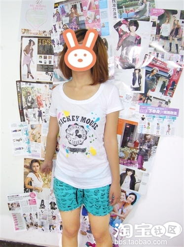 今年最流行的米奇T恤搭配沙滩热裤,时尚感十足。