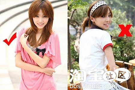 上臂粗会让人显得很胖,影响你的整体搭配,所以在穿着时,避免吊带式的上衣或是袖口紧的TEE,应该选择宽松一点的五分袖或者深色的上衣,这样可以隐藏缺点露出优美的姿态。