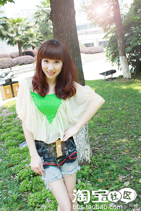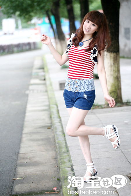 搭配蕾丝牛仔热裤,完美的修饰双腿,使你成为动人的美少女,散发无限迷人风采唷。