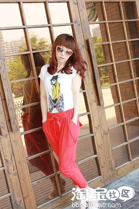 李孝利式长袖款版T恤衫同样可以搭配各种糖果色的彩裤,在色彩和款式上营造层次感。