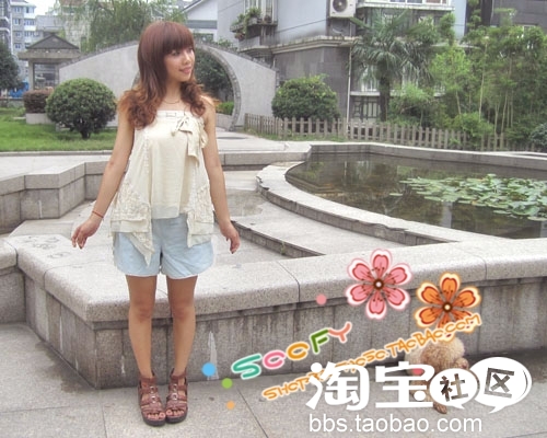 搭配个牛仔蕾丝短款小坎肩,是不是也很有味道?