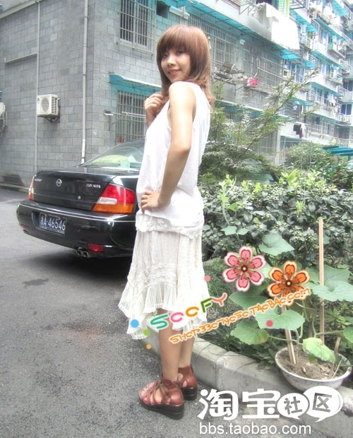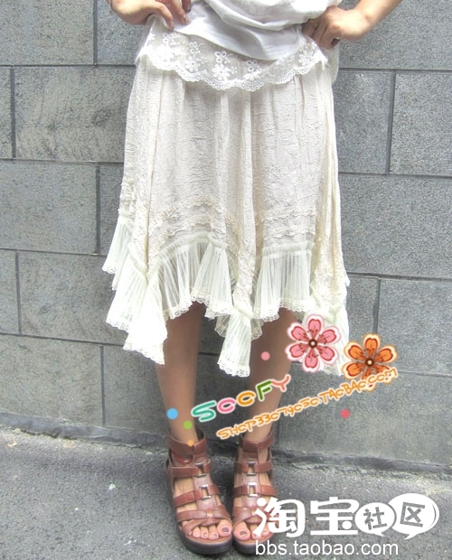 NO.8 波浪百褶蕾丝边两穿半身裙