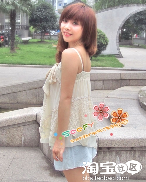 NO.7 不规则剪裁系蝴蝶结雪纺吊带衫