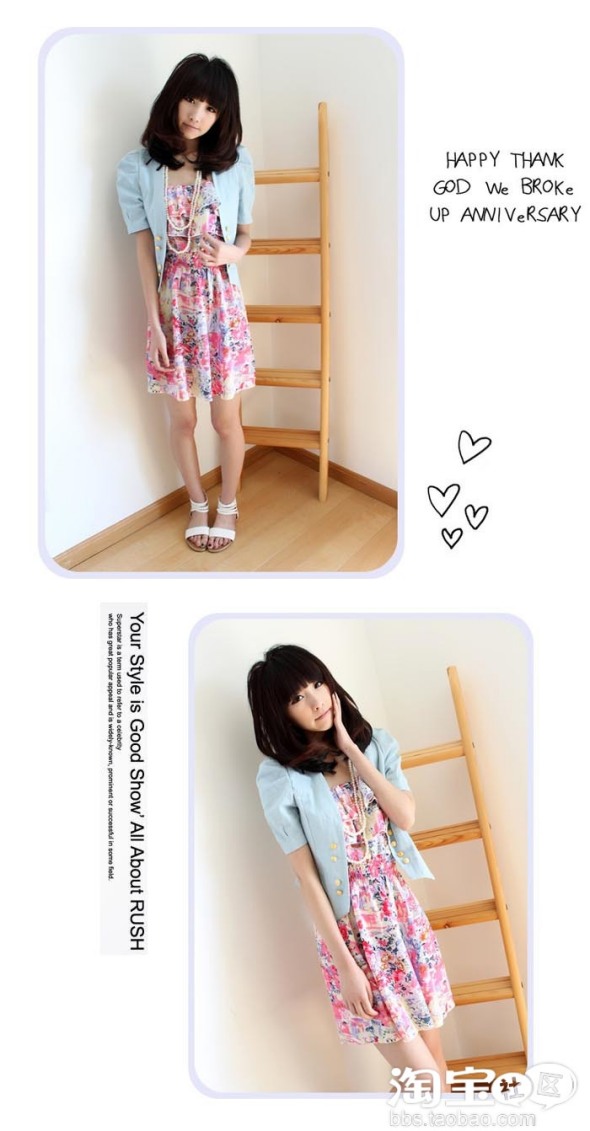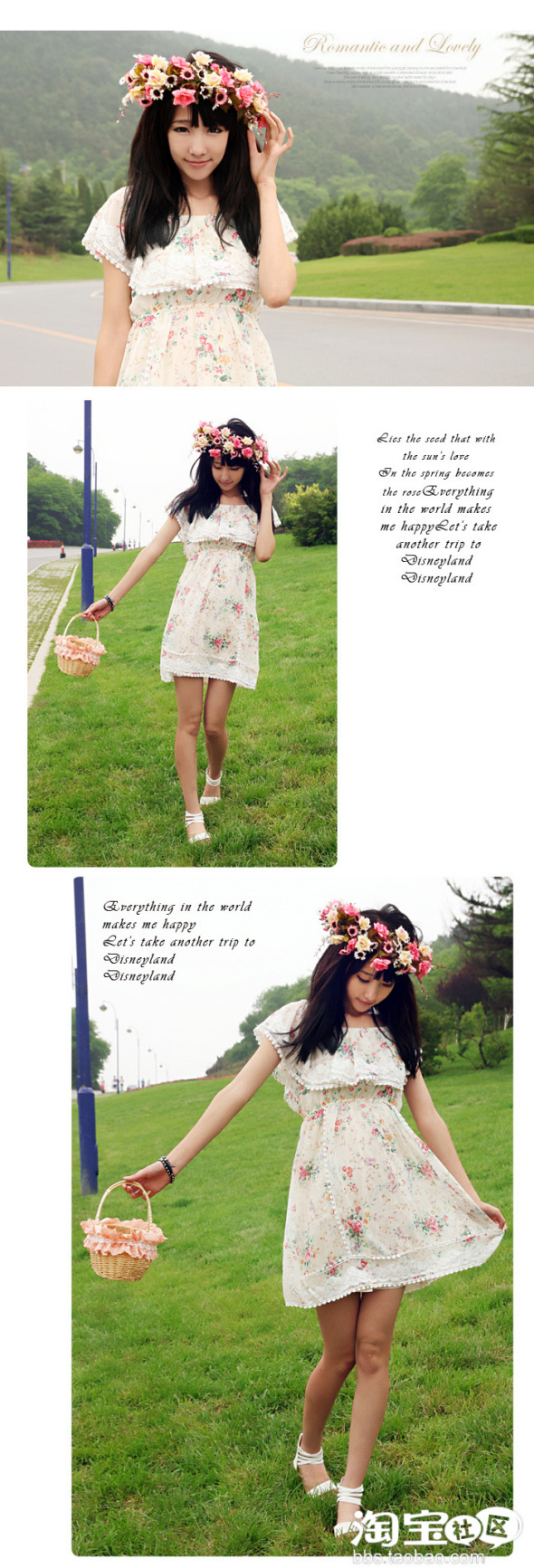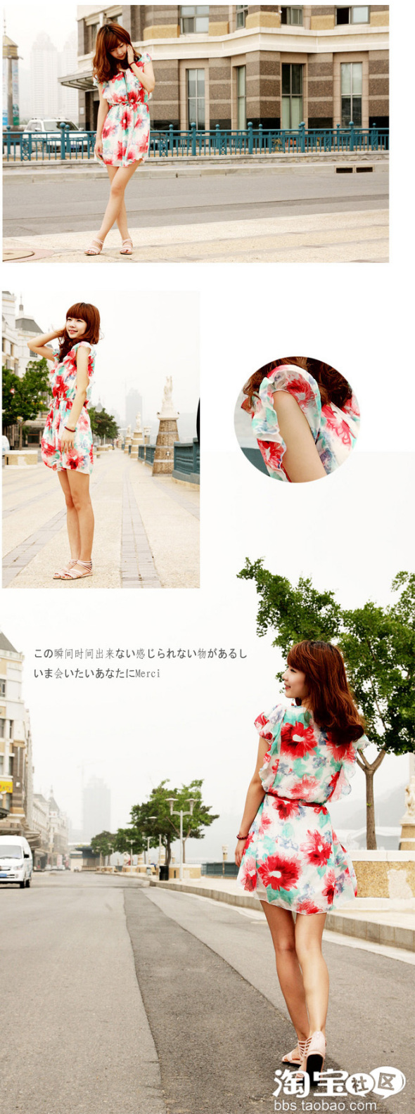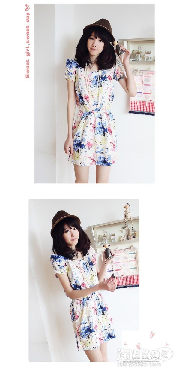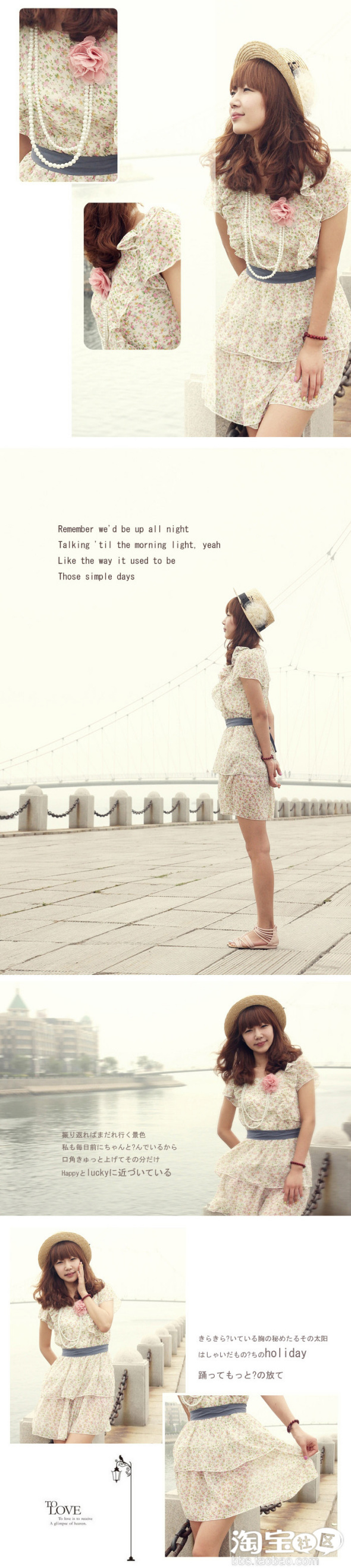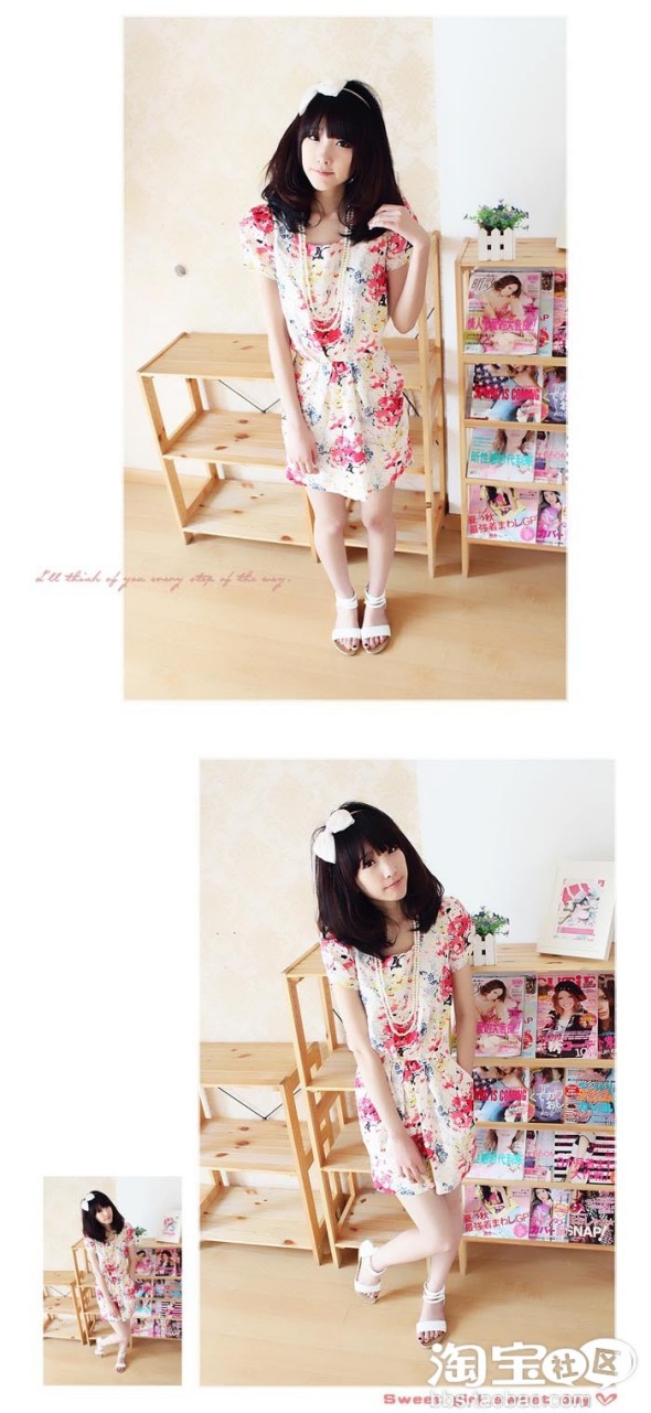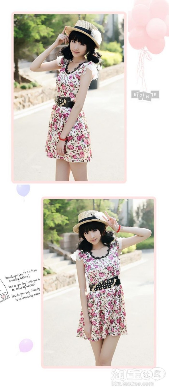 粉粉的花朵,让你整个人看上去就看公主一样,配上可爱的腰带更显身材哦