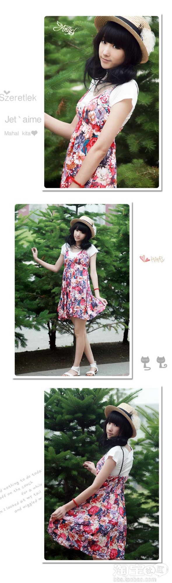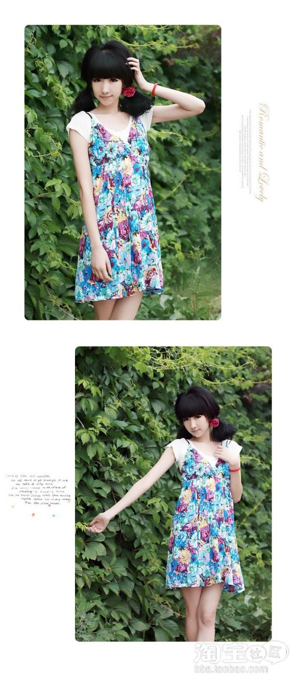 今年大热的花朵图案款,时尚的两件套连衣裙,大V领的设计,喜欢性感装扮的你可以不搭里面的T恤,真是一衣两穿哦