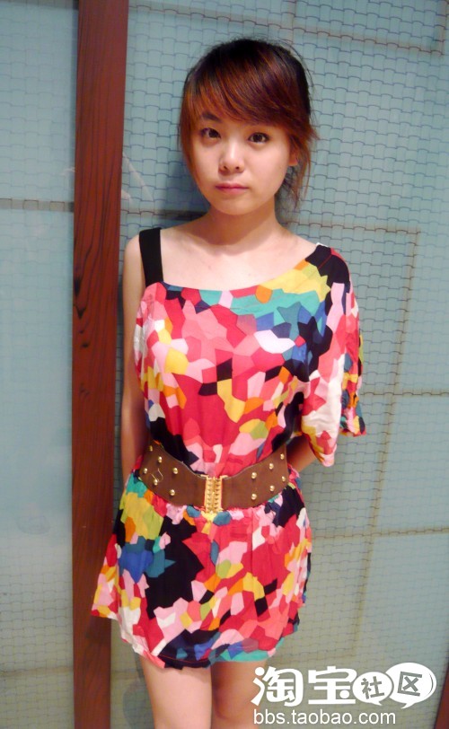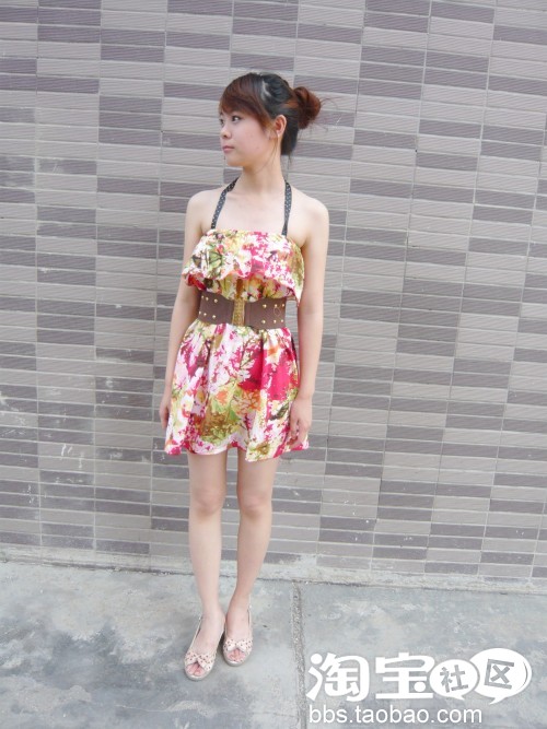 这个抹胸说不清楚是什么料子的 但是穿着感觉很舒服,很凉快哦,很喜欢这个腰封的搭配,上面有柳丁的设计,很时尚的元素,素素的腰带搭配彩色的抹胸裙,很时尚哦