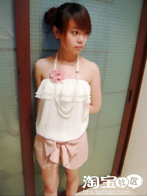 3.雪纺抹胸连体裤+大花朵项链 打造韩版优雅公主风