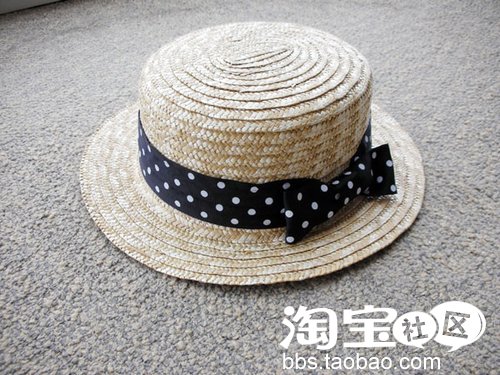 草编帽子配合今年最流行元素---波点作为装饰,将一条波点图案丝带做蝴蝶结样式,让普通的草编帽子充满了生机。