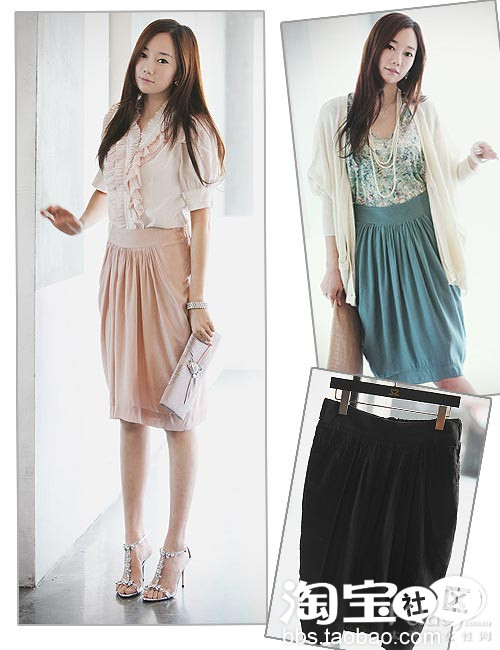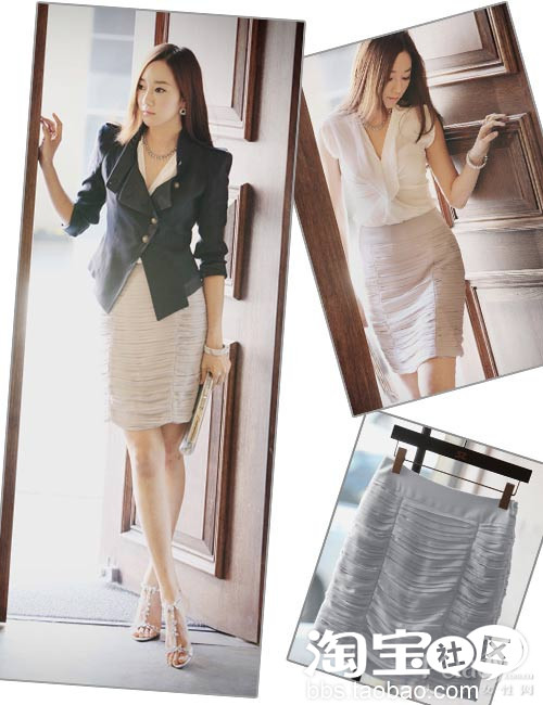 这一款OL必败半裙胜在精致,层层叠叠的细小褶皱像是一种宣言,表明女主角是个注重细节的时尚OL。裸色和浅灰色是今夏时髦的色彩之选,搭配起来也十分方便。
