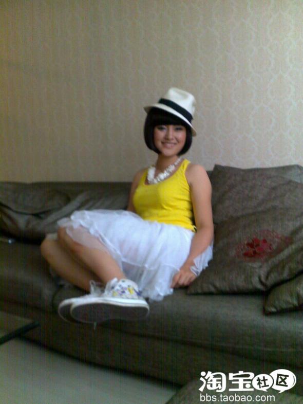 我朋友这个也很清纯哦 白色背心加黄色短裙