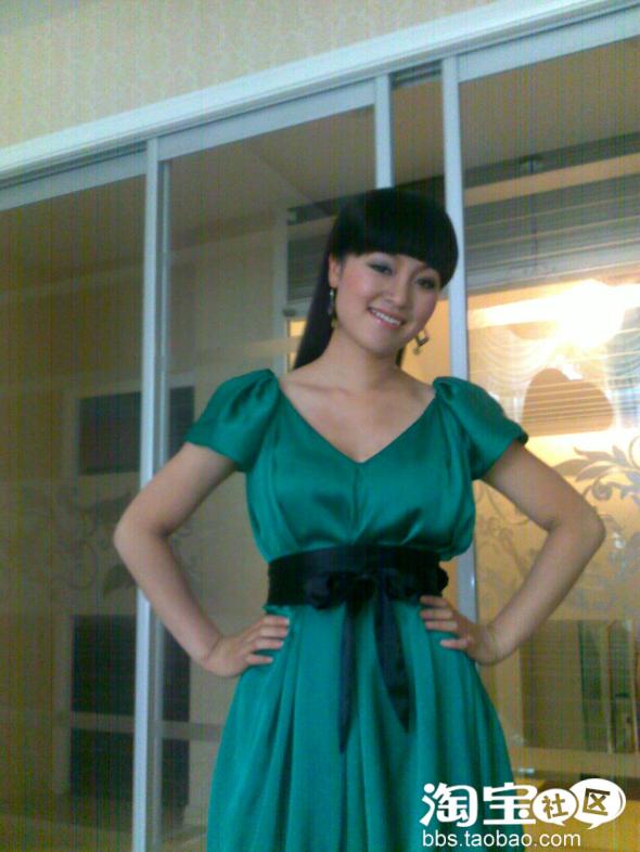 绿色连衣裙配上黑色蝴蝶结 OL风