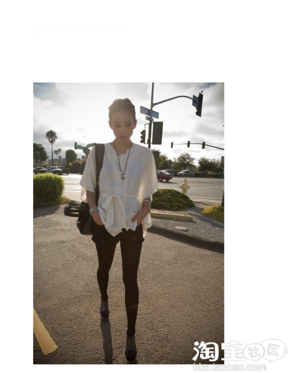 或者把腰带稍稍的往上拉点的话,可以让腿显得更长噢~~