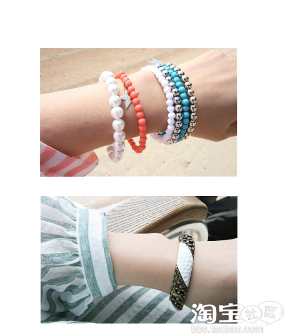 多种颜色的手镯叠加在一起佩戴感觉更加的时尚.