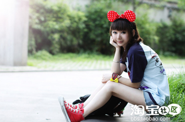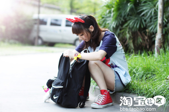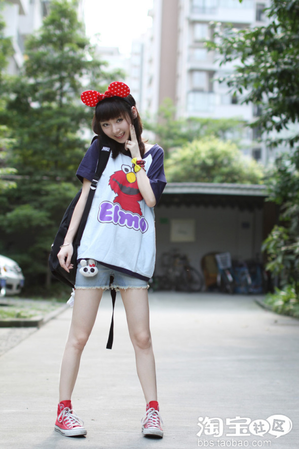 芝麻街宽松T恤+洗白牛仔短裤+红色高腰帆布鞋=休闲乖乖公主。亲爱的王子,我想知道你是否愿意带我到满是怪物的星球去冒险,我想知道在我被怪物抓走的时候,你会不会不顾一切并且超帅的把我抢回来。