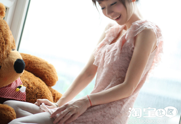 粉红蕾丝小裙+宫廷白丝袜=小性感大甜美的小公主。层层叠叠的蕾丝软软的贴合着身体,无法抵抗的肉肉粉色,好像空气里都充满了草莓奶茶香,哈哈。