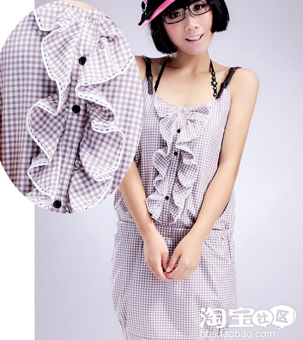 格子的吊带连衣裙,实在很可爱。