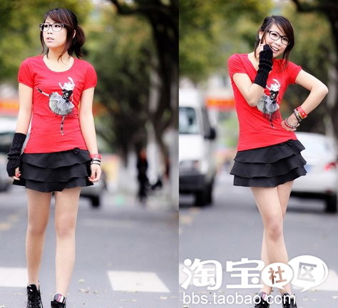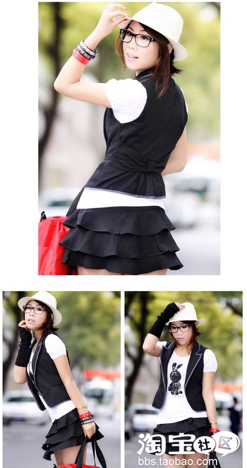 经典的三层荷叶边的小黑裙,加上小小的蝴蝶结,酷毙的同时又有邻家姑娘的亲和力。