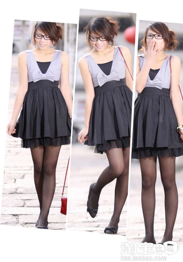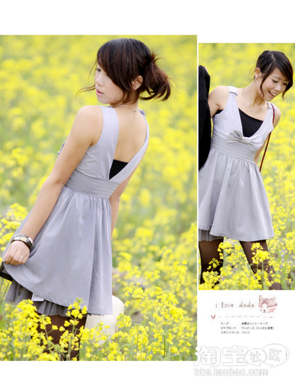 大爱的灰色蝴蝶结连衣裙。搭配黑色的小抹胸,赞到无语。