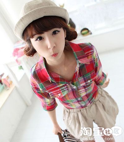 毋庸置疑,格子衬衫再多一件也不嫌多~~,也永远是MM衣柜必不可少的单品,清新可爱的格子衬衫夏季依然是最受宠滴~穿上你的小裙裤或是MINI裙就能美到极点哦~~,小女生应该都不会拒绝这样的装扮吧!