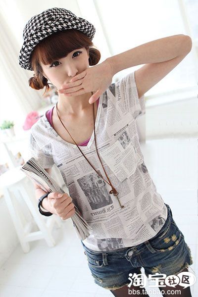 这并非是报纸做的T恤,它是用布料做的,可以穿可以洗。不过怎么看怎么像披了张报纸在身上。穿上它招摇过市,估计会很抢眼,不过肥胖型MM就还是不要穿了,穿不出那么种效果!