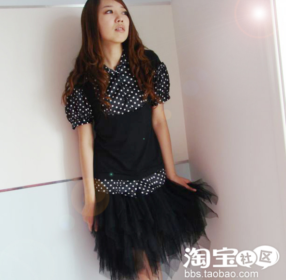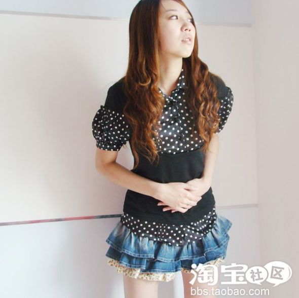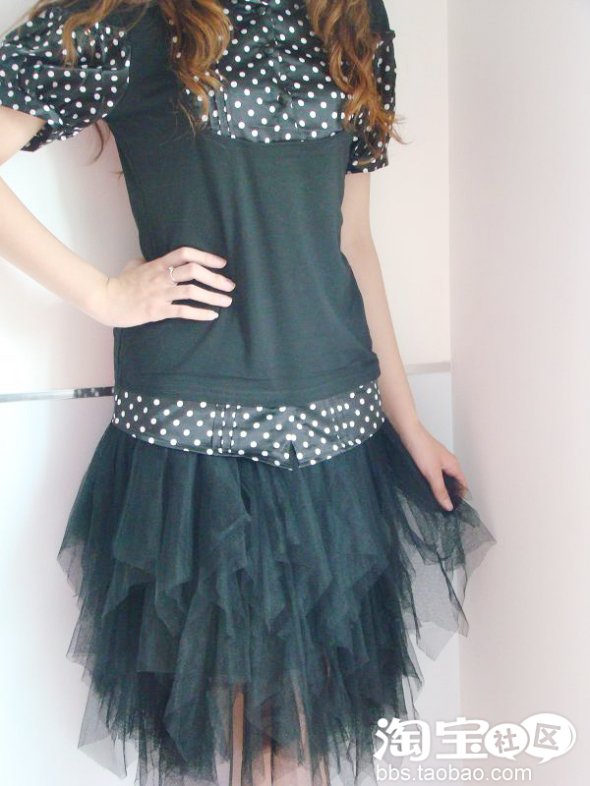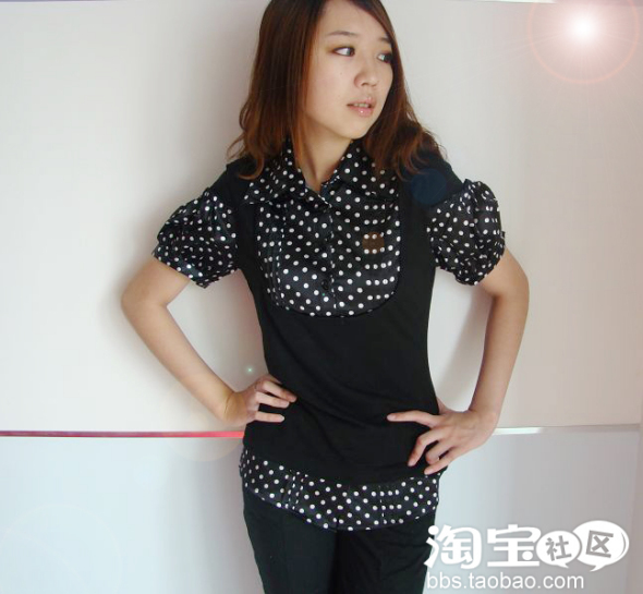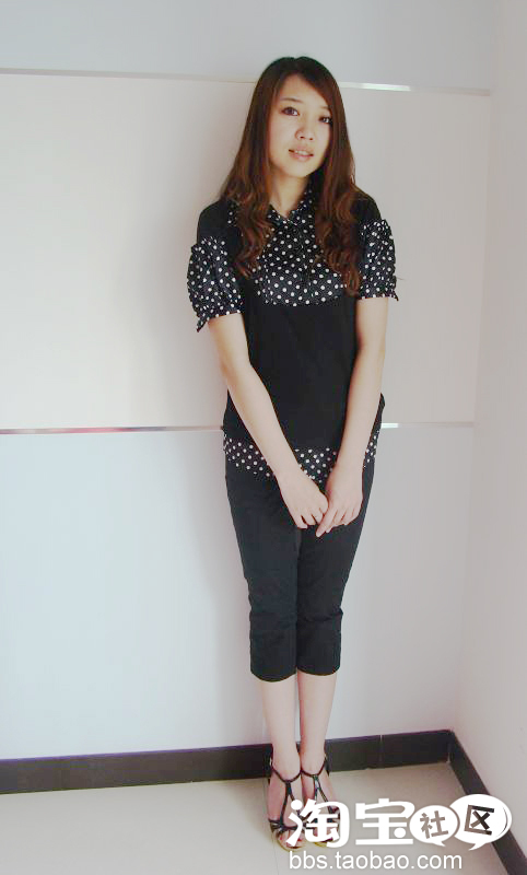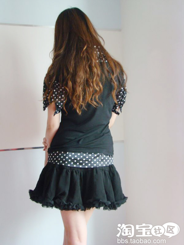 这款水玉波点T,有很合体的剪裁,穿上以后非常修饰线条
