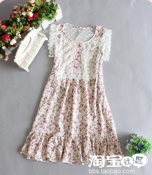 蕾丝和小碎花的组合,带着田园的气息,给炎热的夏天带来一抹清凉的风景