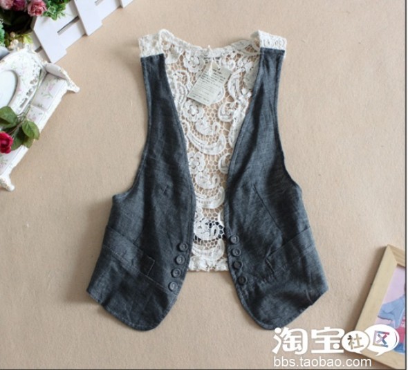 蕾丝拼接的马甲,帅气中不是柔美,是mm们不错的选择哦