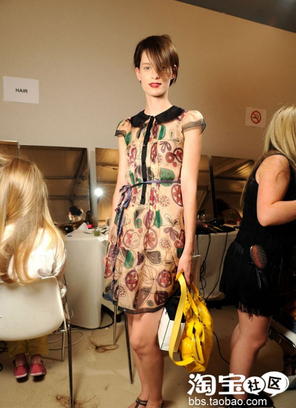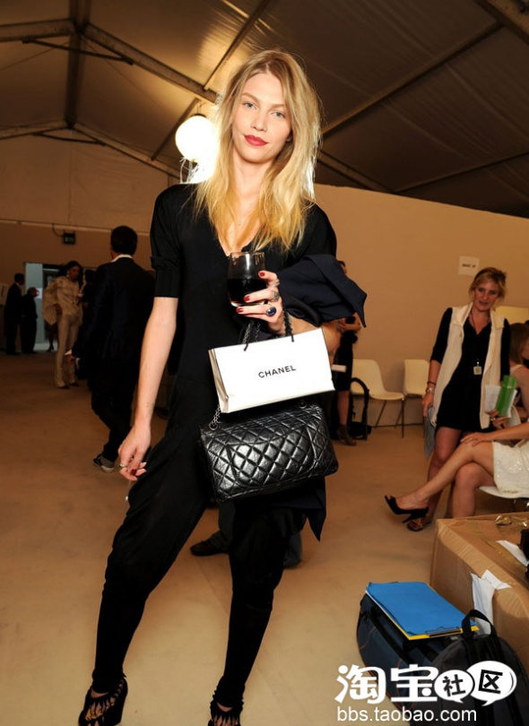 Chanel 2010-11高级定制秀场后台:法国名媛Poppy Delevigne 身着CHANEL 09/10 “巴黎-上海”高级手工坊系列小黑裙。
