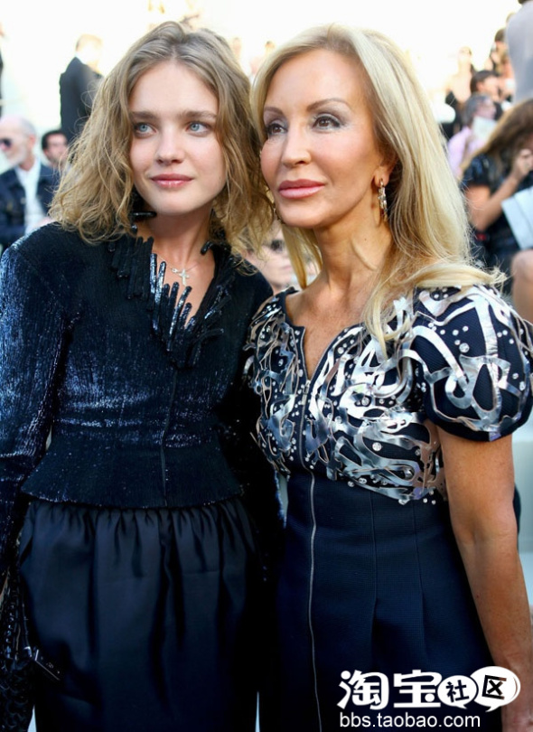 Chanel 2010-11高级定制秀场场外:超模Natalia Vodianova 身着CHANEL 08/09秋冬高级定制系列黑色丝绒套装。